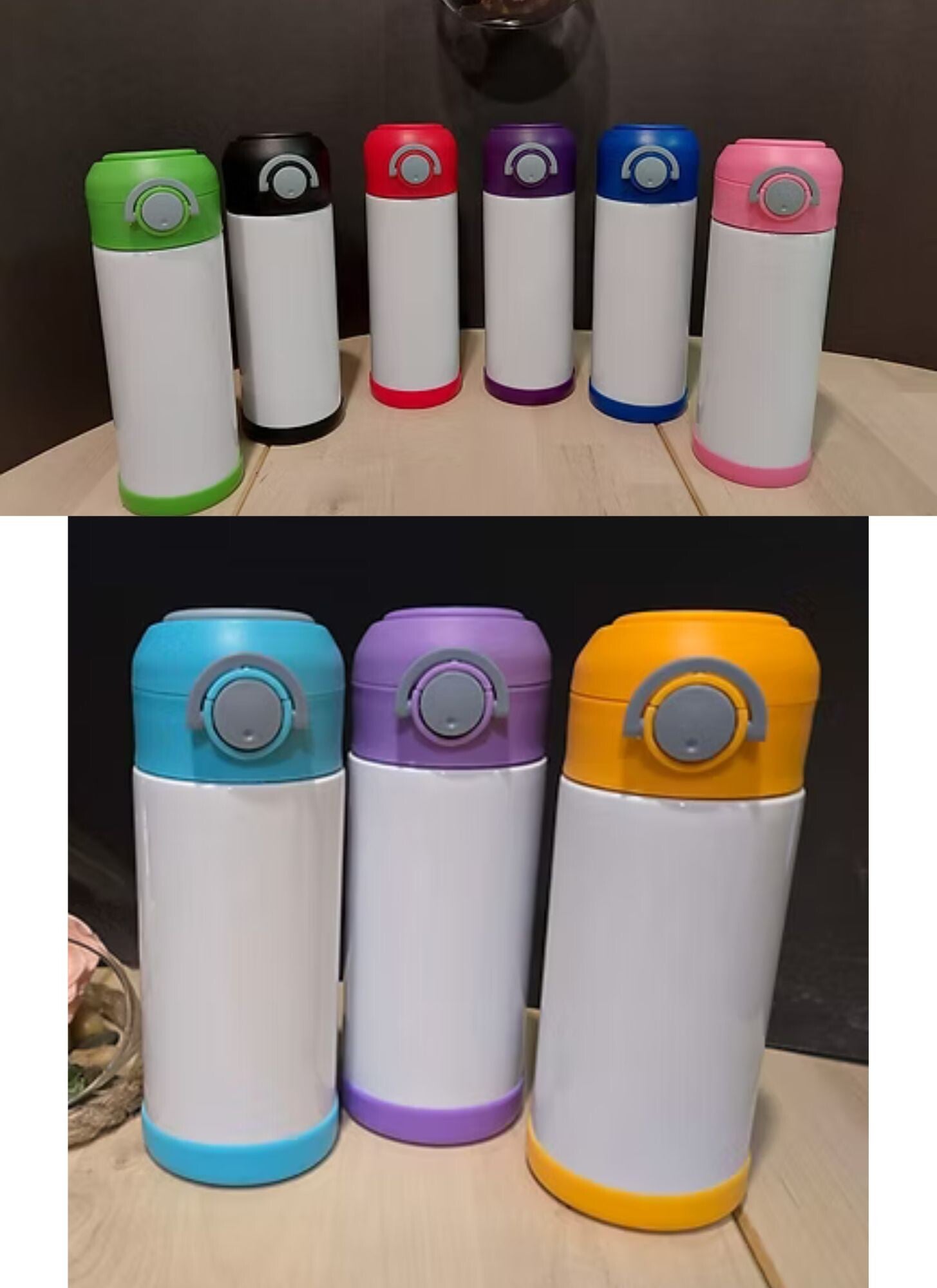 Bouteille ultra pratique pour les enfants! Plusieurs couleurs disponibles. Cran de sécurité pour éviter les déversements et poignée pour le transport. (Garde froid ou chaud durant 8 heures) Choisissez ce que votre enfant aime le plus et personnalisez-la en ajoutant son nom. Fini les étiquettes qui partent au lavage!